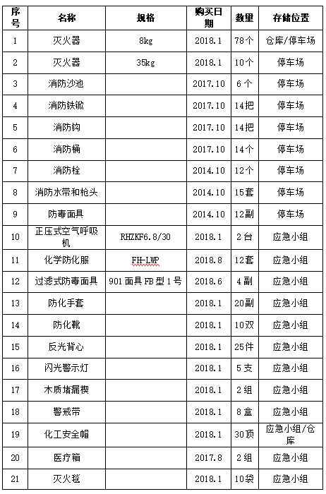 以上应急设备和物资从2015年至今已投入有200余万元(包含:各类运输车辆、设备维修费用、已消耗物资、已损失设备和物资等)。