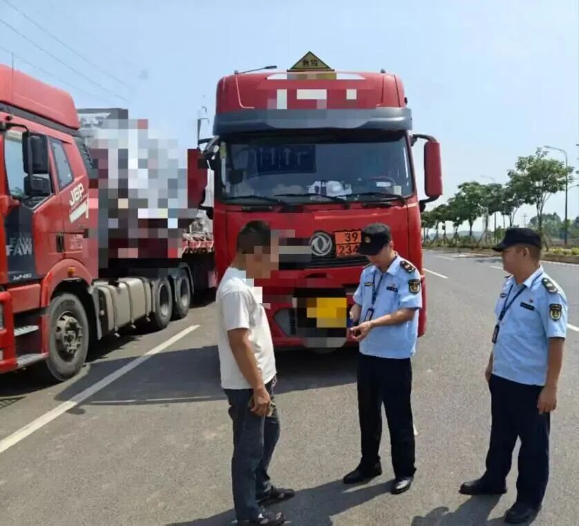 此次例行检查聚焦危险货物运输、重型货运等重点领域,执法人员采用“定点检查+动态巡查”相结合的方式,对过往货运车辆的运营资质、驾驶员与押运员证件、车辆安全设施配备等情况进行逐一核查。上午10时许,一辆悬挂桂NXX牌照的危险货物运输车辆驶入检查区域,执法人员当即示意车辆停靠接受检查。在核查相关证件时,执法人员发现该车驾驶员虽持有有效的危险货物运输驾驶员从业资格证,但无法提供押运员的相关证件及随车同行证明。经进一步核实,驾驶员承认因押运员临时有事未随车通行。鉴于此次违规运输行为未造成严重后果,执法人员秉持“631”说理式执法理念,现场对驾驶员开展交通安全及危货运输相关法律法规的深度普法教育,详细阐明违规行为的法律后果与潜在危害,并根据规范整改要求,责令驾驶员必须等待押运员到达现场、确认符合运输条件后,方可继续上路行驶。