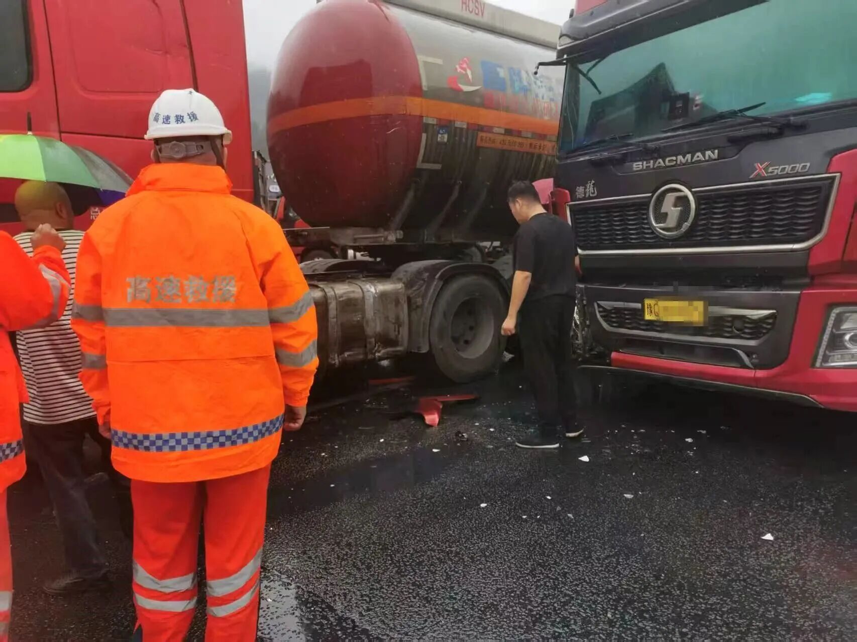 湖南沅陵服务区一半挂车与油罐车发生碰撞