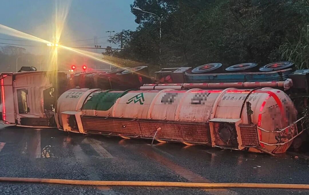 事件:11月3日06时,湘潭市消防救援支队接报称,湘潭县018县道一液碱罐车发生侧翻泄漏。