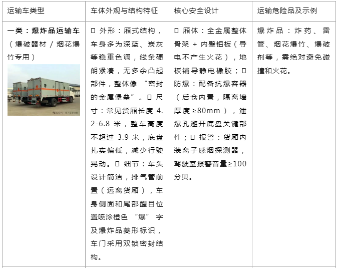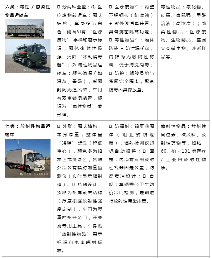 结语:每一辆 “特殊货车”,都是安全责任的载体危险品运输车的外形设计,从来不是 “颜值选择”,而是 “安全适配”——爆炸品车的防爆结构、腐蚀品车的防腐罐体、放射性物品车的铅屏蔽层,每一处细节都对应着危险品的核心风险点。了解这些 “移动保险箱” 的门道,不仅能让我们在公路上更好地避让和识别,更能感受到背后 “分类运输、安全第一” 的行业准则。