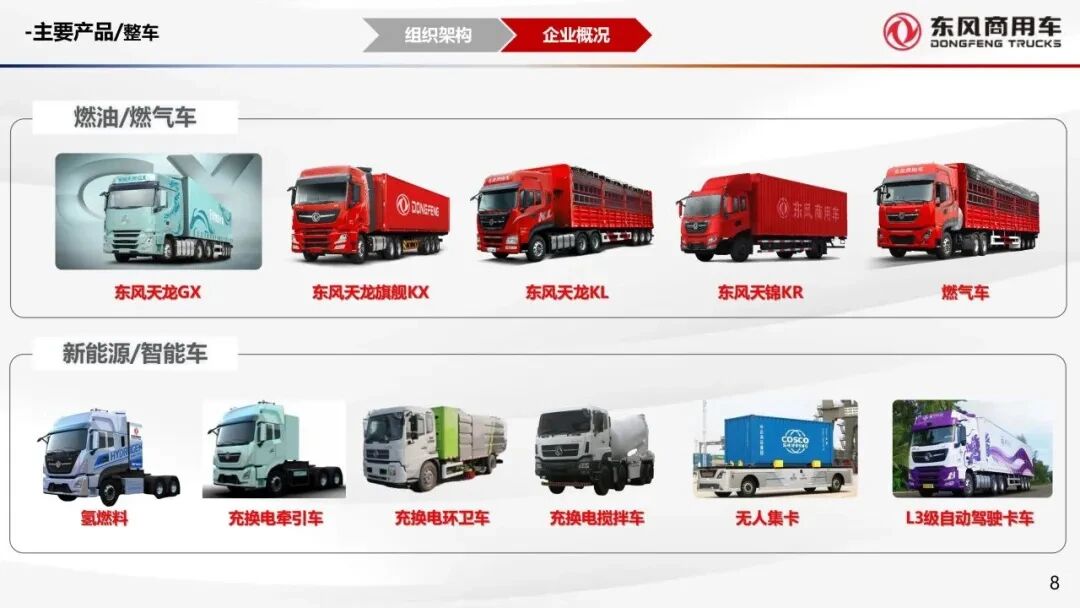 公司历经50余年的不懈追求,致力于打造成为世界一流的商用车企业,始终坚持“一切源于可靠”的品牌理念,践行以客户为中心的品牌向上战略,持续为客户提供满意的产品和服务,不断加快产品的推陈出新和迭代升级,形成G200/D760/D320/D560等覆盖高端、主流、价值等商品平台,面向资源短倒、环卫、渣土/搅拌等细分市场完成新能源系列化布局,在智能网联方面,坚持技术创新,推进智慧港口无人集卡、高速干线智能驾驶卡车、智慧矿卡等商业化应用,引领行业发展。
