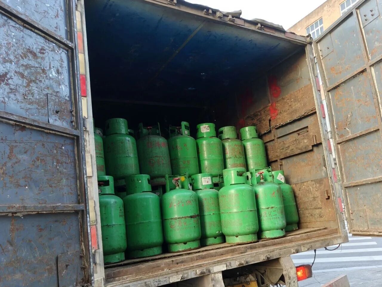 01、重庆查获一厢式货车装载240罐废旧液化气罐