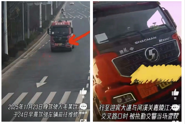 2025年11月23日18时许,驾驶人与同事共同就餐,期间饮用了3两多酒精度数约52度的散装白酒。11月24日8时许,驾驶员起床后未再饮酒且未进食早餐,随即驾驶停放在金垭镇路边的川Axxx8号陕汽牌重型半挂牵引车,前往七里工业园区晋华修理厂进行车辆维修。当日8时30分许,驾驶员驾车行驶至迎宾大道与河溪关嘉陵江大桥交叉路口时,被执勤交警当场查获。