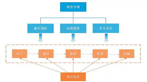 《危险化学品安全法》从实现危险化学品安全整体治理的目标出发,按照风险来源、治理资源、能力水平等要素,对相关责任主体进行系统性分工,推动政府—企业—社会各方协同共治。长期的治理实践证明,在危险化学品安全责任体系中,最关键的是两方面责任。