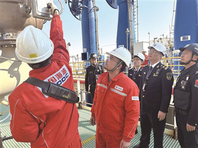 图为工作人员检查船舶运行情况。 (视觉中国 供图)