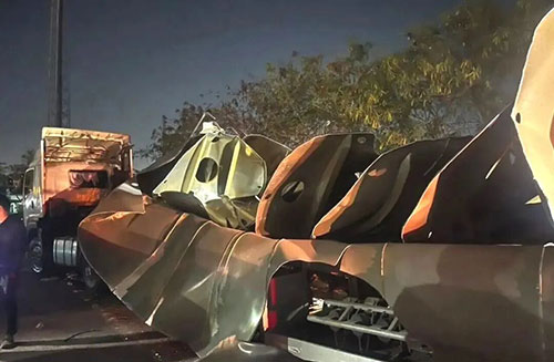 泰国--一辆卡车后部的空油罐发生爆炸造成1名路人遇难