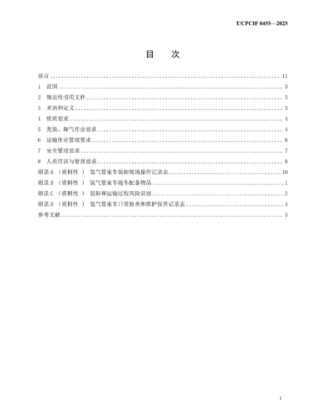 本标准共8章,涵盖了氢气管束车道路运输与充卸的资质要求、充卸操作要求、运输要求、安全管理要求、人员培训与管理要求等。