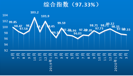 由中国物流与采购联合会危化品物流分会联合摩贝(上海)生物科技有限公司发布的危险货物道路运输价格指数2020年3月为97.33点,环比下降了0.2%。