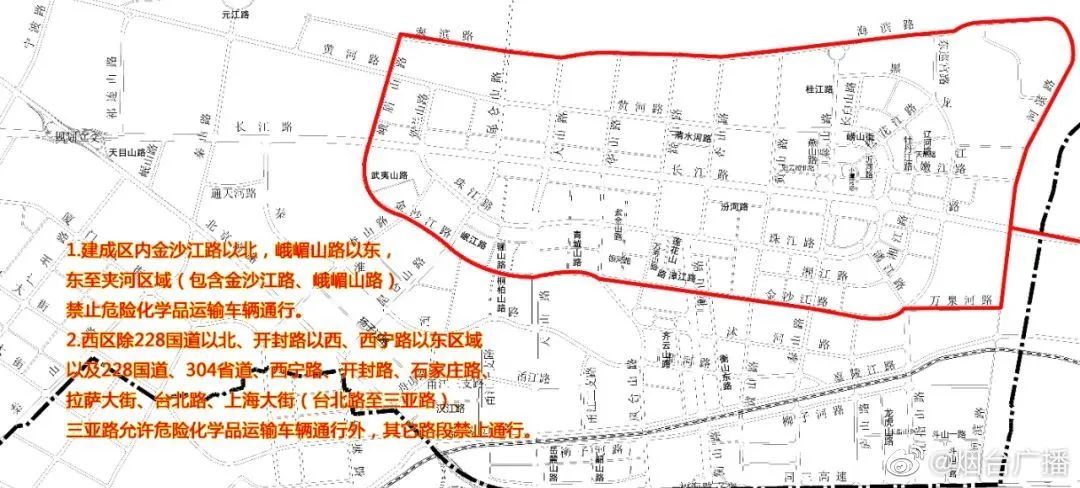 1.建成区内金沙江路以北,峨嵋山路以东,东至夹河区域(包含金沙江路、峨嵋山路)禁止危险化学品运输车辆通行。