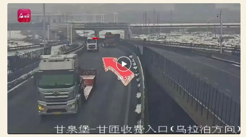 1月17日下午,新疆自治区公安厅交警总队高等级公路支队东绕城大队指挥室民警在视频巡查中发现,一辆危险化学品运输车辆在行驶到乌鲁木齐东绕城高速甘泉堡匝道时,缓慢停靠在右侧行车道上,并打开了双闪警示灯。