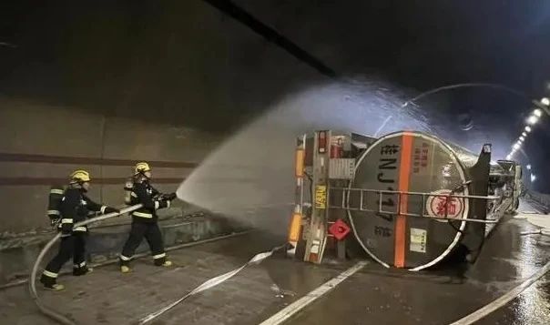 事件:4月18日9时许,广西梧州支队指挥中心接到报警:梧州长洲区马梧高速飞田隧道路段发生一起槽罐车侧翻的交通事故,无人员被困。