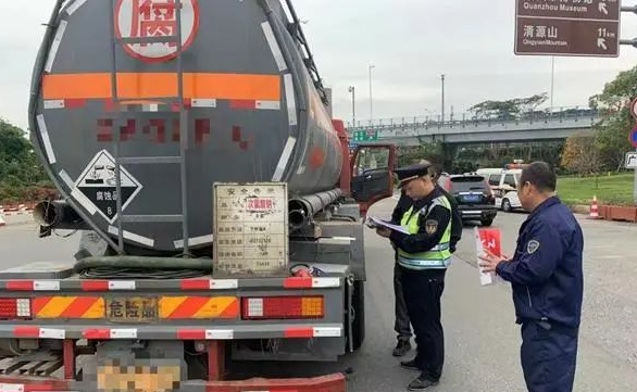 事件:近日,泉州市交通运输执法人员在泉州西福高速收费站广场开展执法检查时,查获一起危险品运输车辆运输货物与车辆罐体适装介质不符的案件。