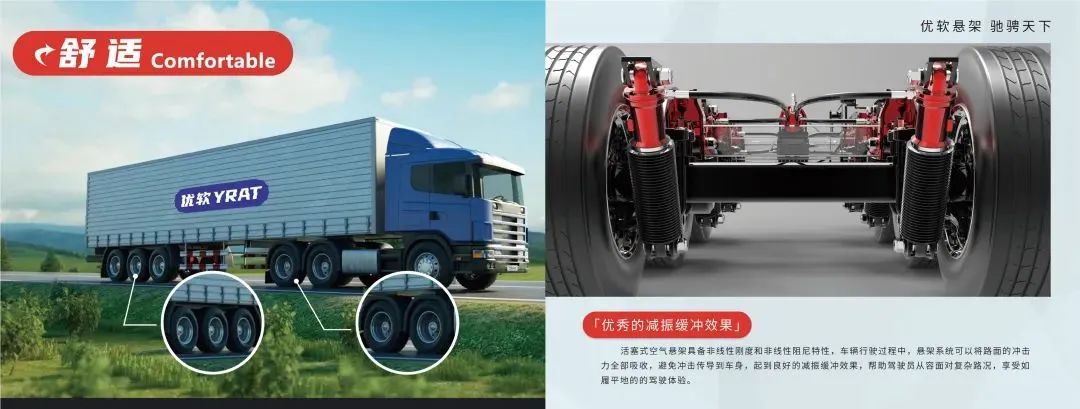 活塞式空气悬架,更多高端商用车新选择;优软科技,从2012年起,致力于将广泛应用于飞机起落架、矿山用车、装甲车辆,以及豪华轿车的活塞式空气悬架技术,应用到牵引车、载货车、半挂车、港口用车、矿用自卸等商用车辆领域;好悬架,优软造!