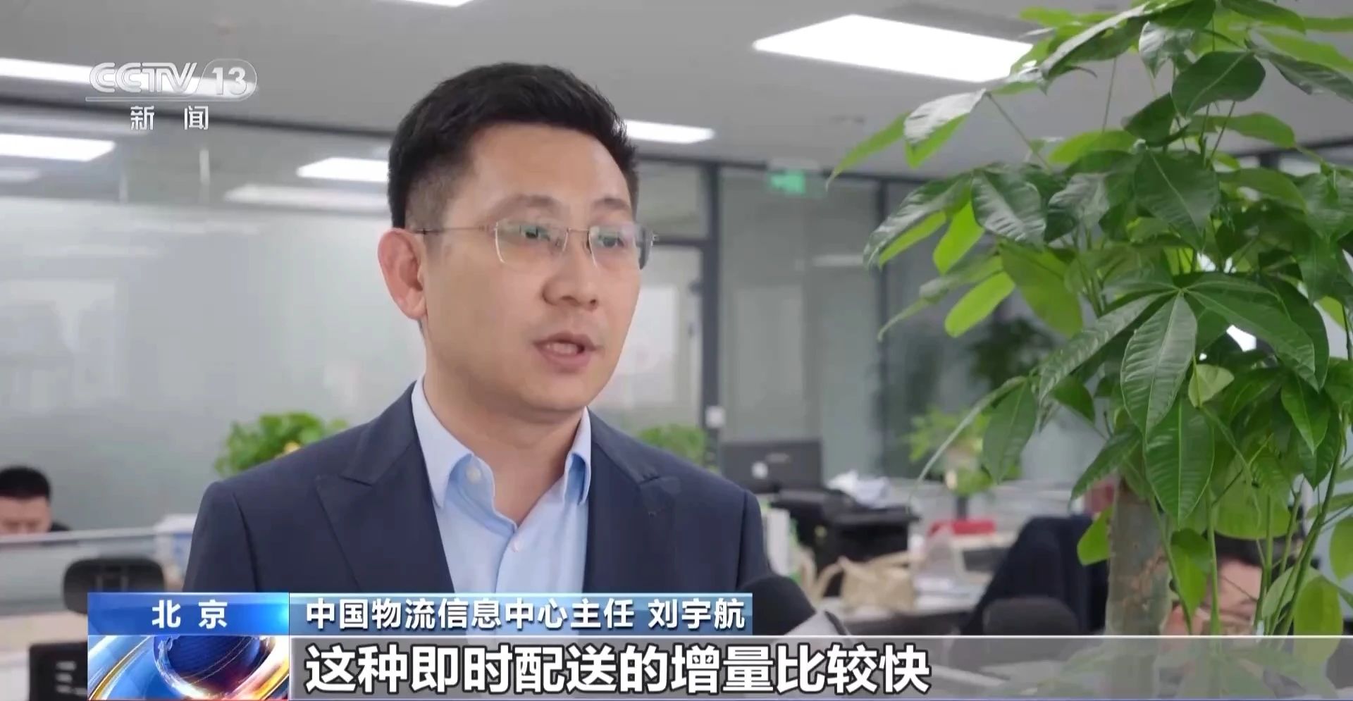 中国物流信息中心主任 刘宇航:现在整个围绕电商板块的即时配送的增量比较快,反映出居民消费活力进一步加强,同时也反映出整个电商物流的供给能力和服务能力逐步提升。