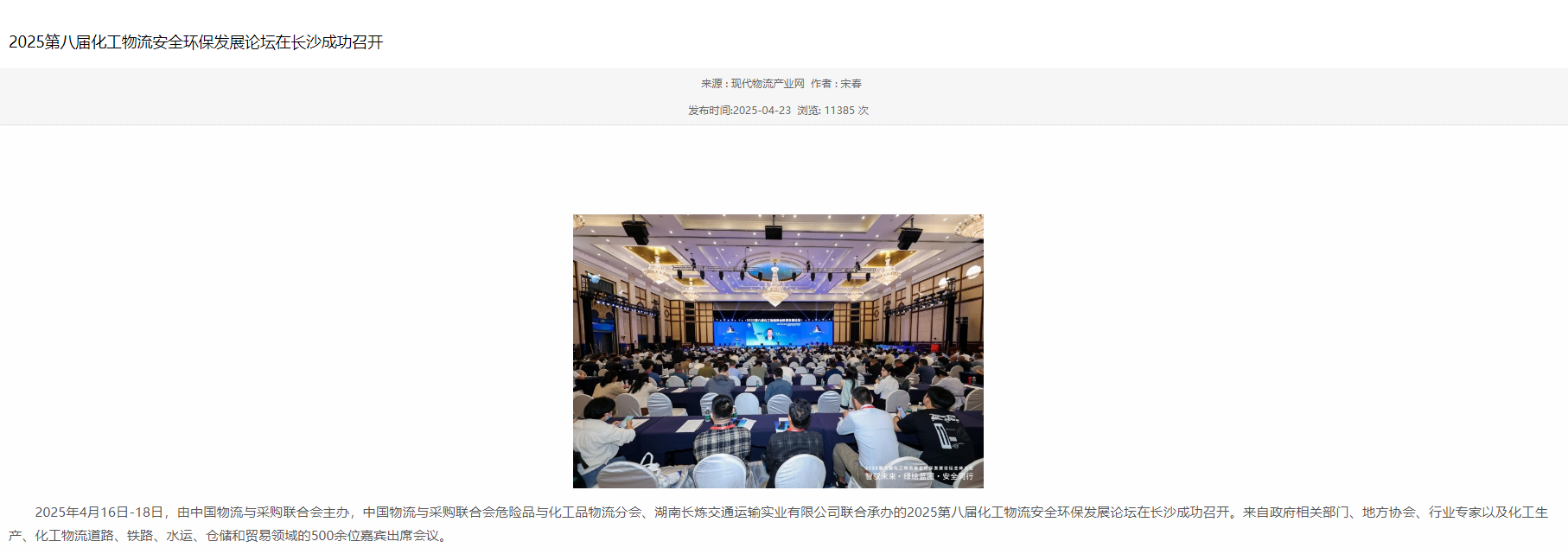 2025第八届化工物流安全环保发展论坛在长沙圆满落幕,论坛内容丰富,与会代表反响热烈,同时也得到了众多大众媒体和行业媒体的争先报道,小编特意罗列出来仅供大家参考。