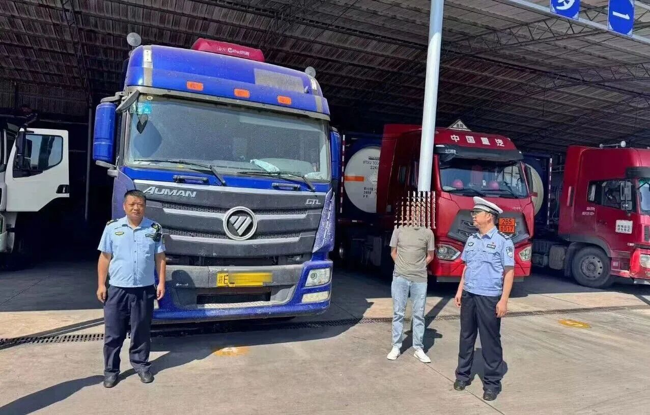 执法人员在行动中创新实施“四必查”工作法,为危化品运输车辆进行全方位“体检”: