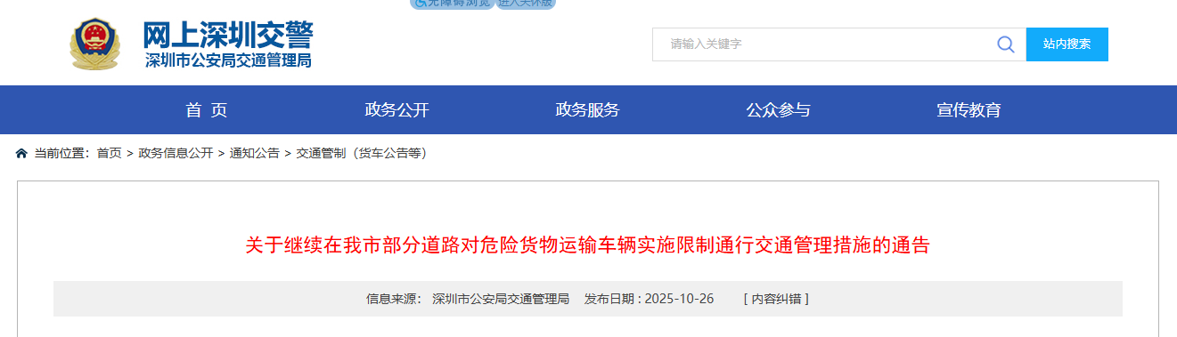 七、在深圳通行的危险货物运输车辆除需遵守本通告规定外,还需遵守《广东省公安厅、广东省生态环境厅、广东省交通运输厅、广东省应急管理厅、广东省市场监督管理局关于危险货物运输车辆限时禁行高速公路的通告》(粤公规〔2021〕3 号)中全省高速公路每天0时至6时禁止危险货物运输车辆通行的措施。