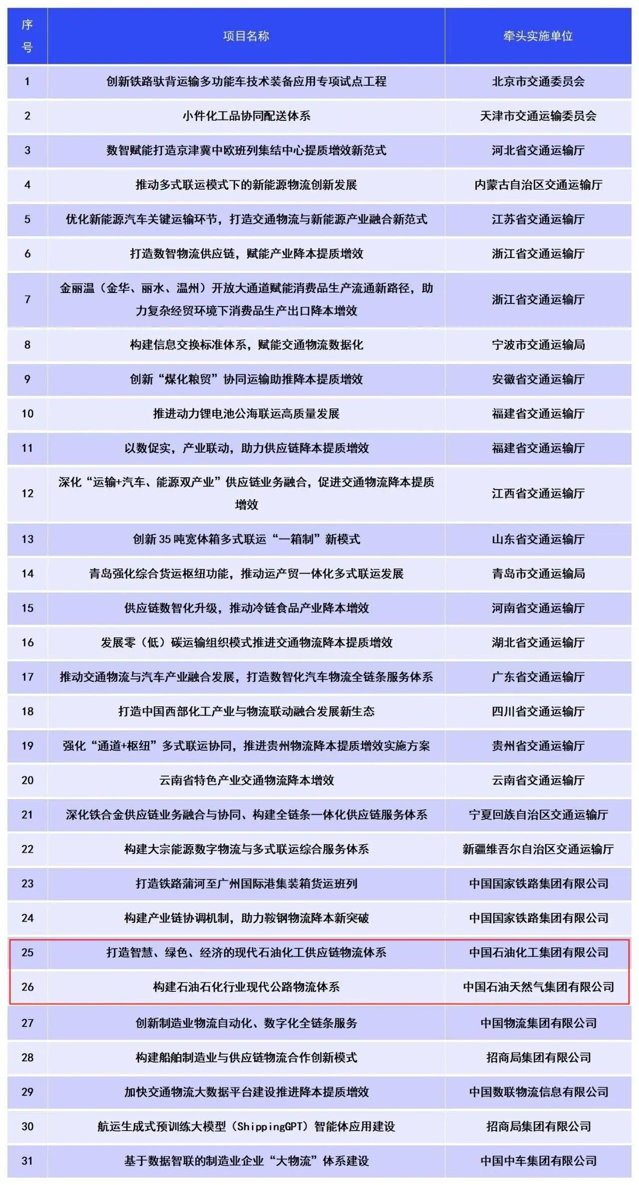 11月12日,2025年全国交通物流降本提质增效现场推进会在山东青岛召开。会上,交通运输部发布了第二批交通物流降本提质增效交通强国专项试点项目名单。(其中中石化、中石油项目纳入专项试点名单)