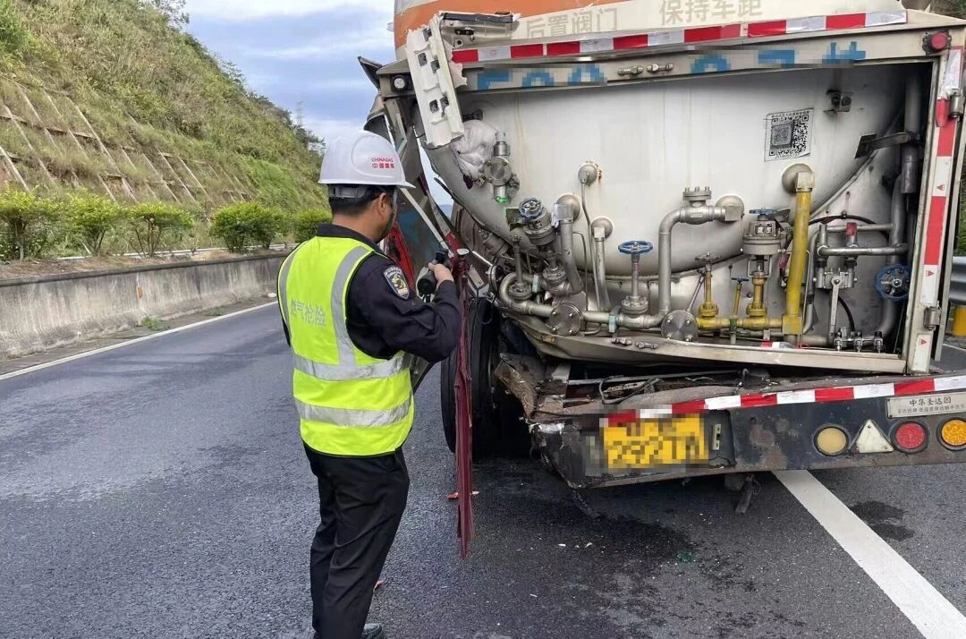 事件:11月11日凌晨,广东汕湛高速一辆由北海驶往清远方向,车牌为桂Exx的LNG槽罐车,在行驶至汕湛高速腰古路段时,被一辆货车追尾,现场情况紧急。