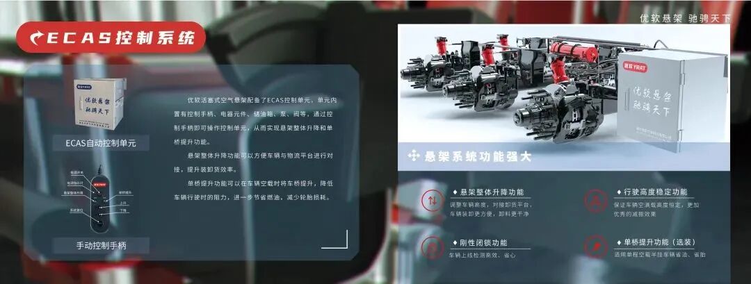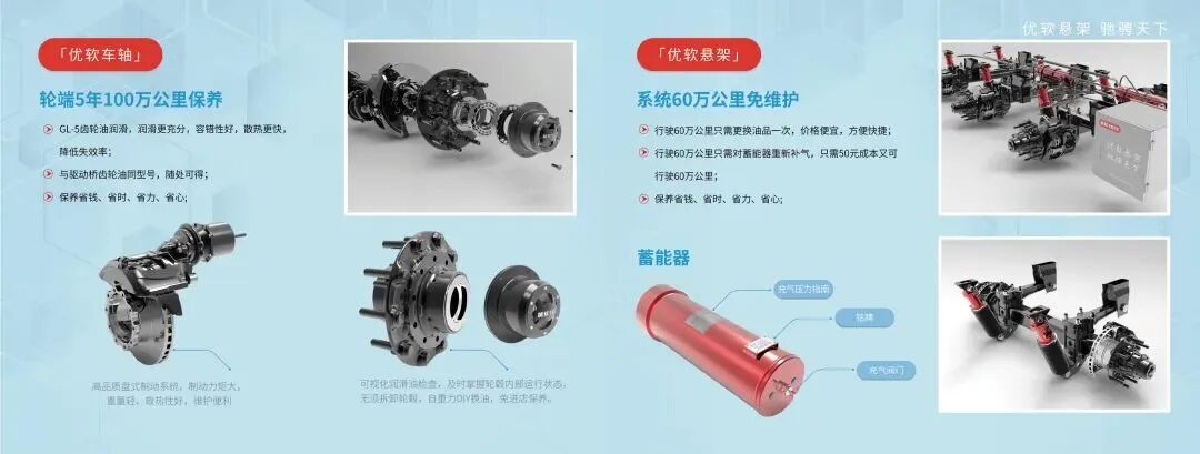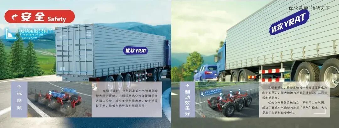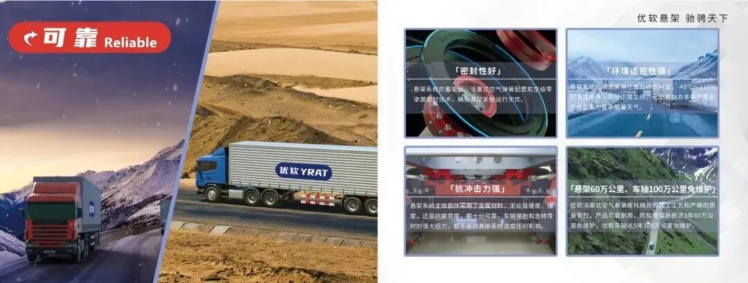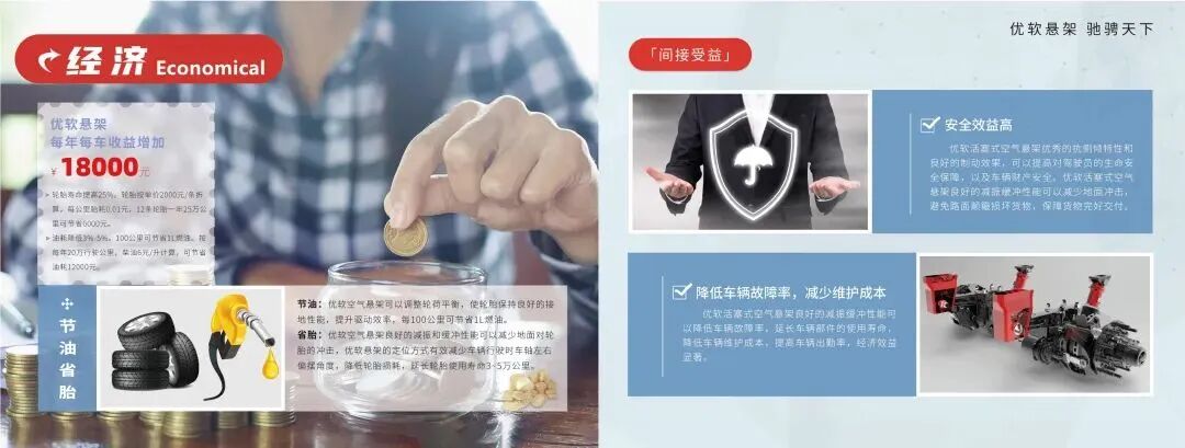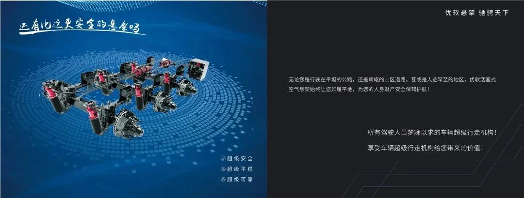 活塞式空气悬架,更多高端商用车新选择;优软科技,从2012年起,致力于将广泛应用于飞机起落架、矿山用车、装甲车辆,以及豪华轿车的活塞式空气悬架技术,应用到牵引车、载货车、半挂车、港口用车、矿用自卸等商用车辆领域;好悬架,优软造!