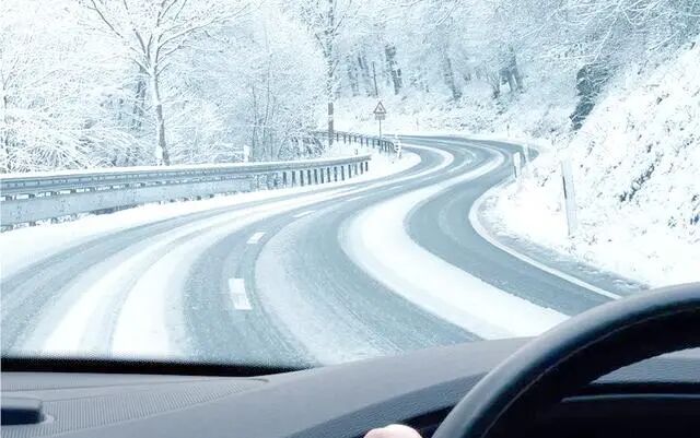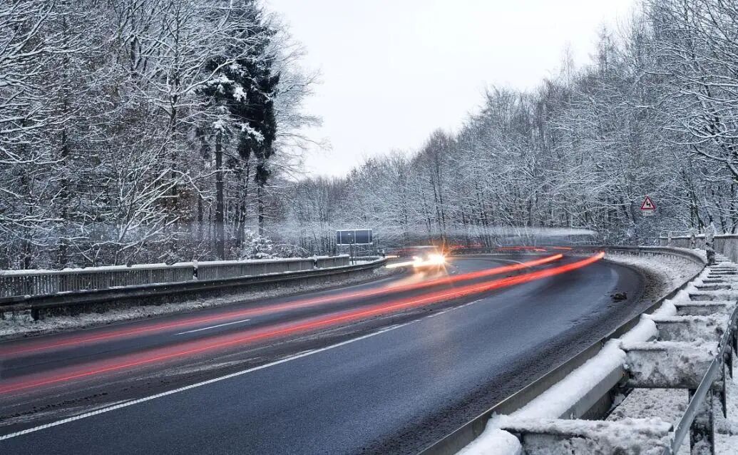 融雪路面湿滑,制动距离会比干燥路面延长,需适当降低车速,与前车保持足够安全距离,避免跟车过近导致追尾。