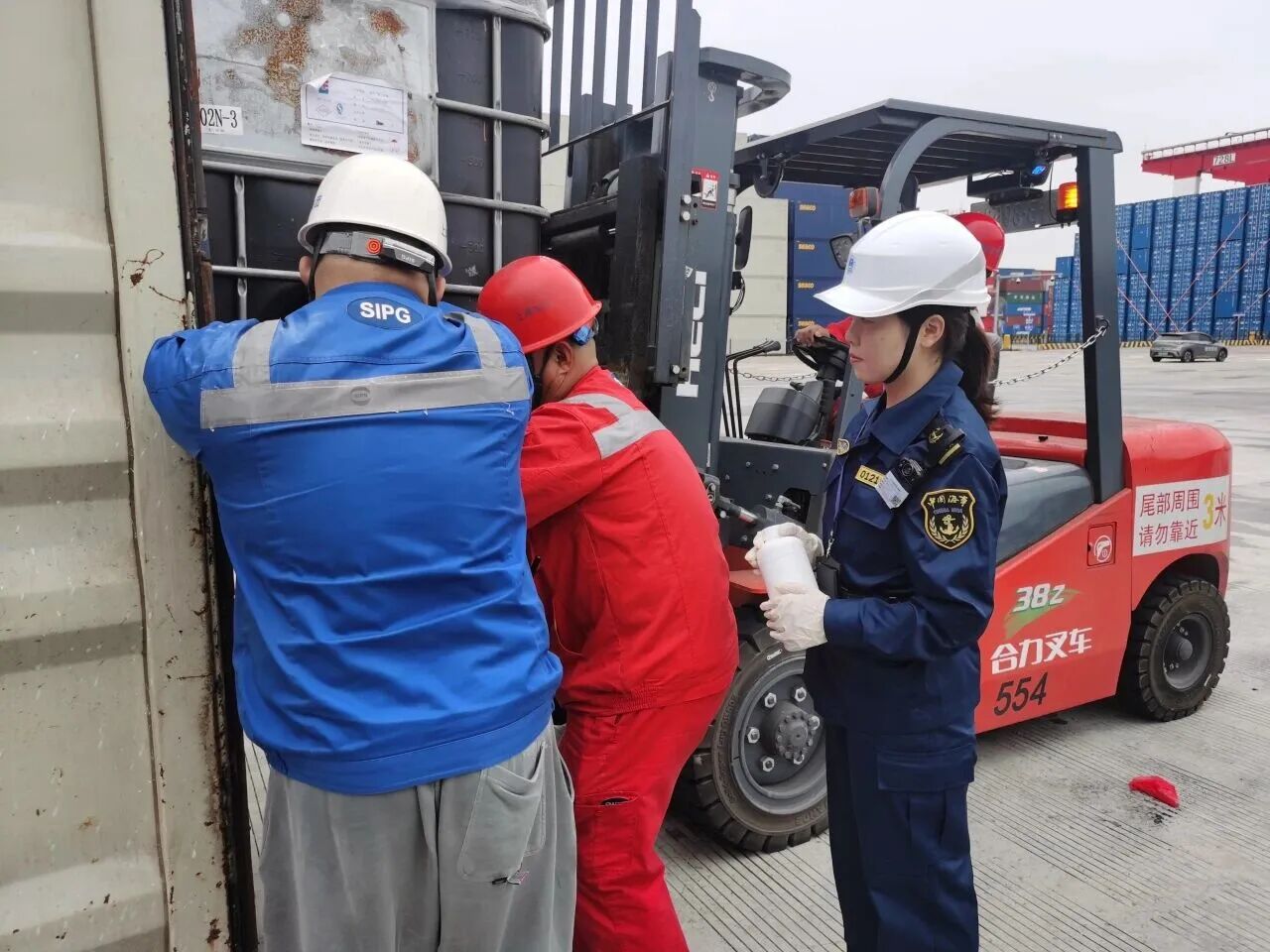 11月7日,宝山海事局罗泾海巡执法大队在进行集装箱开箱检查时,一打开集装箱箱门,箱内散发浓烈刺鼻气味。经取样送检,发现属于《国际海运危险货物规则》规定的第3类危险货物,联合国编号1866,正确运输名称为“苯乙烯溶液,易燃”。目前,执法人员已对该“谎报瞒报”违法行为进行立案查处。