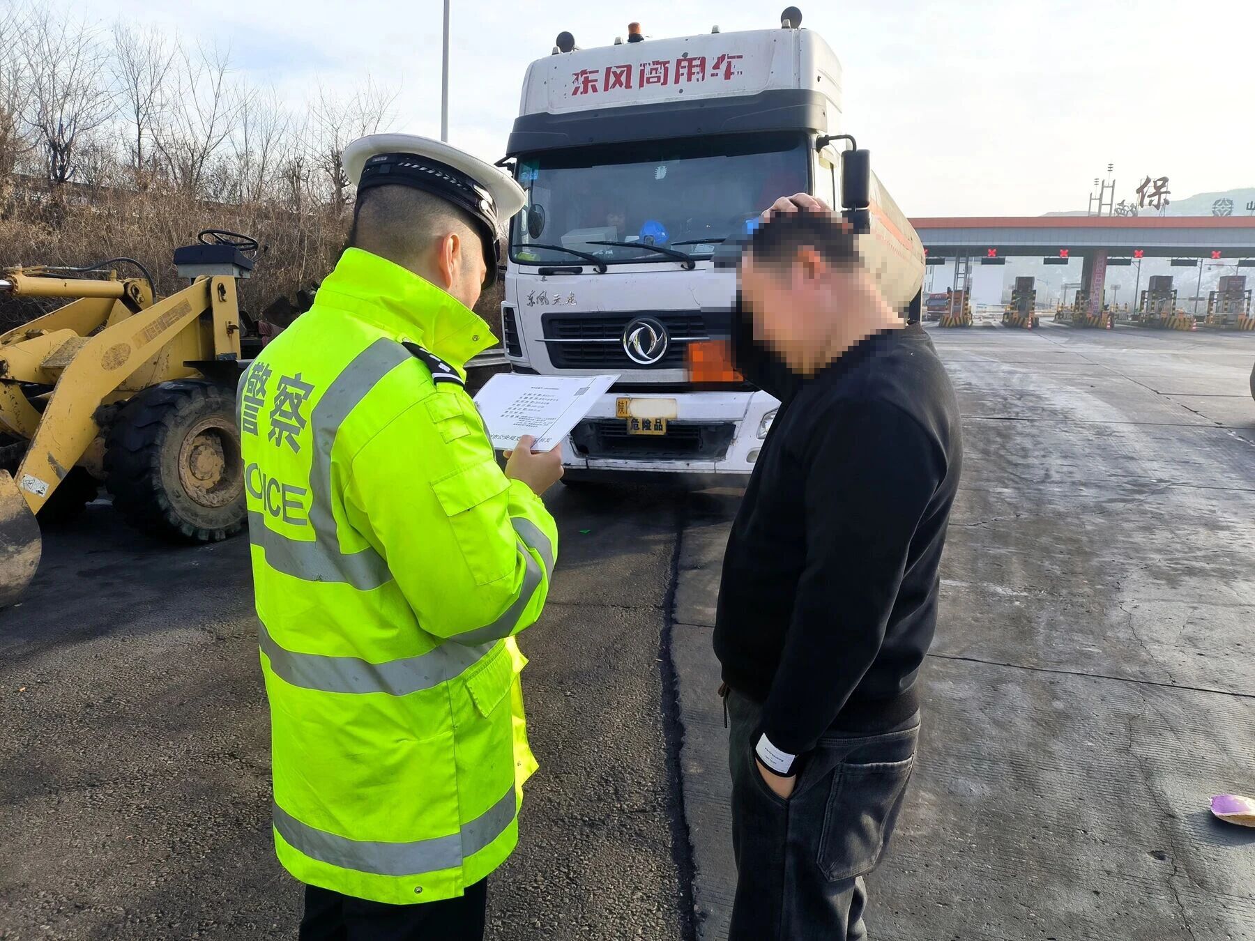 12月19日09时30分许,高速五支队五大队民辅警在日常执勤时,发现一辆危化品运输车欲从沧榆高速保德收费站驶离,民警随即引导车辆至安全地点。