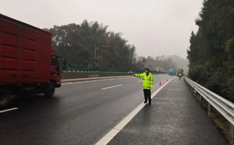 事件:1月3日11时40分,黄山交警高速四大队民警巡逻时发现一辆危化品运输车因断电停于应急车道,迅速上前设置防护。得知该车刚出服务区便抛锚了。