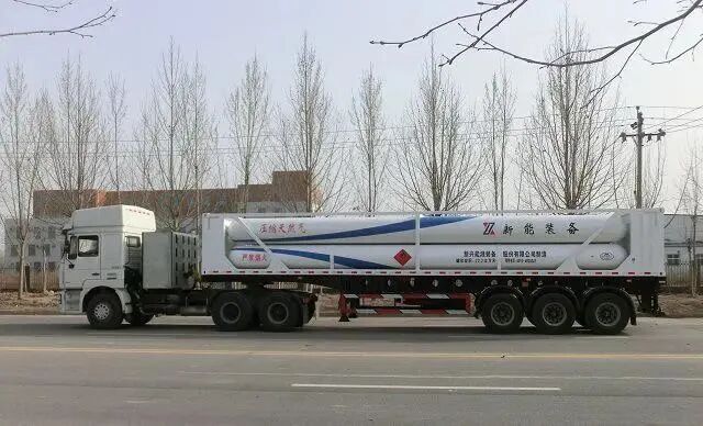 CNG罐车是由常温高压(20Mpa)把天然气以高压气体的形式存储在无缝钢管的集束瓶中(一个罐组有8、9、11个瓶),主要特点就是高压,此罐体一旦泄漏原则上不考虑堵漏(高压气体,堵漏的成功率极低),当发生泄漏燃烧时主要以冷却控烧的战术处置。