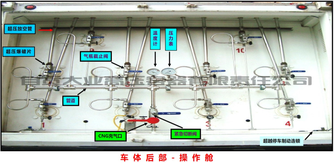 注意:严禁在CNG长管拖车尾部停留或者部署力量,防止相关人员受到高压气体或阀门管线等意外打击伤害。