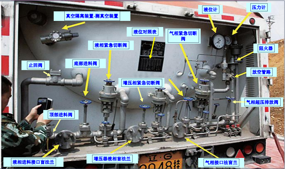 3、液位压力:液位计和压力表是否损坏,读取液位(压差液位计和充装量对照表)和压力时要确保截止阀处于开启状态,确保液位和压力均为罐内的真实值。