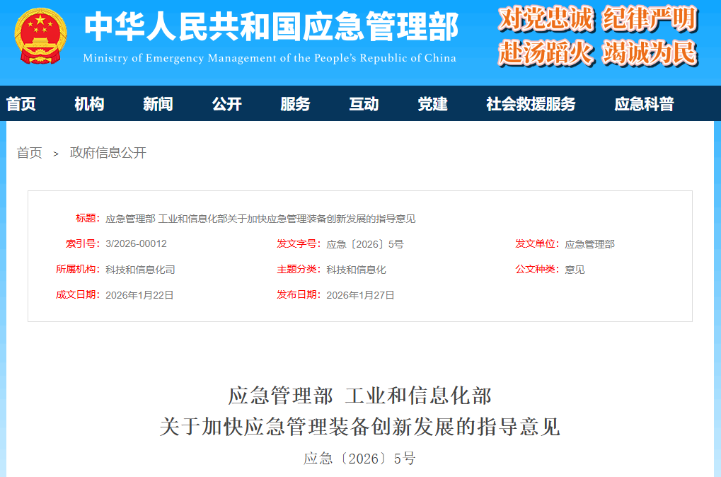 应急管理装备是赋能应急管理新质生产力的重要支撑,是推进应急管理体系和能力现代化的重要保障,是发展安全应急装备战略性新兴产业的重要内容。为加快应急管理装备创新发展,强化应急管理装备技术支撑,推动安全应急装备产业高质量发展,制定本指导意见。