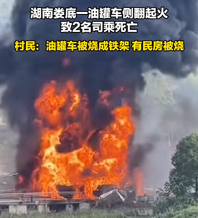 娄底一油罐车侧翻泄漏起火致2人死亡
