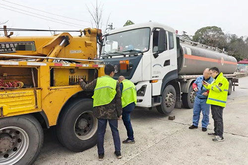 事件:3月7日11时15分许,许广高速湘潭段北往南K735公里处,一辆危化品运输车因突发故障,被迫临时停靠在应急车道。由于危化品车辆存在特殊安全风险,快速妥善处置刻不容缓。