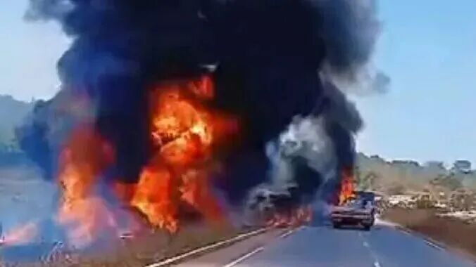 事件:3月16日,几内亚马木市(Mamou)附近发生一起严重的道路交通意外,一辆燃油油罐车与挂车相撞后引发爆炸起火,事故已造成1人死亡、数人受伤,涉事车辆与新建沥青路面均遭严重损毁。