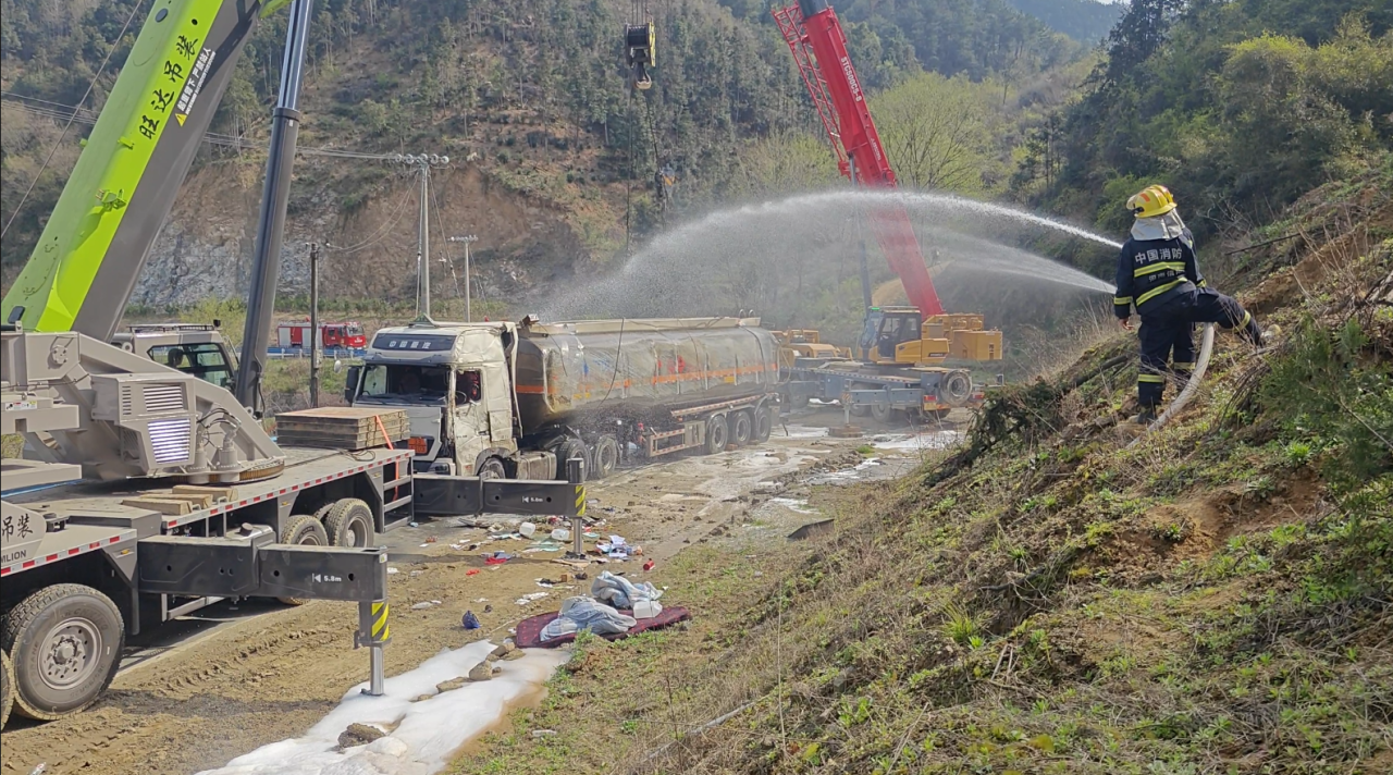 中国物流与采购联合会危化品物流分会:据了解,所幸车辆罐体未破损。消防救援人员迅速到场警戒,协助完成倒罐处置。小编提醒:驾驶员遇到不熟悉的路线一定要减速慢行,避免急拐急刹,切勿急踩刹车,以免发生侧滑、甩尾。切莫等事故发生了才知道后悔莫及!
