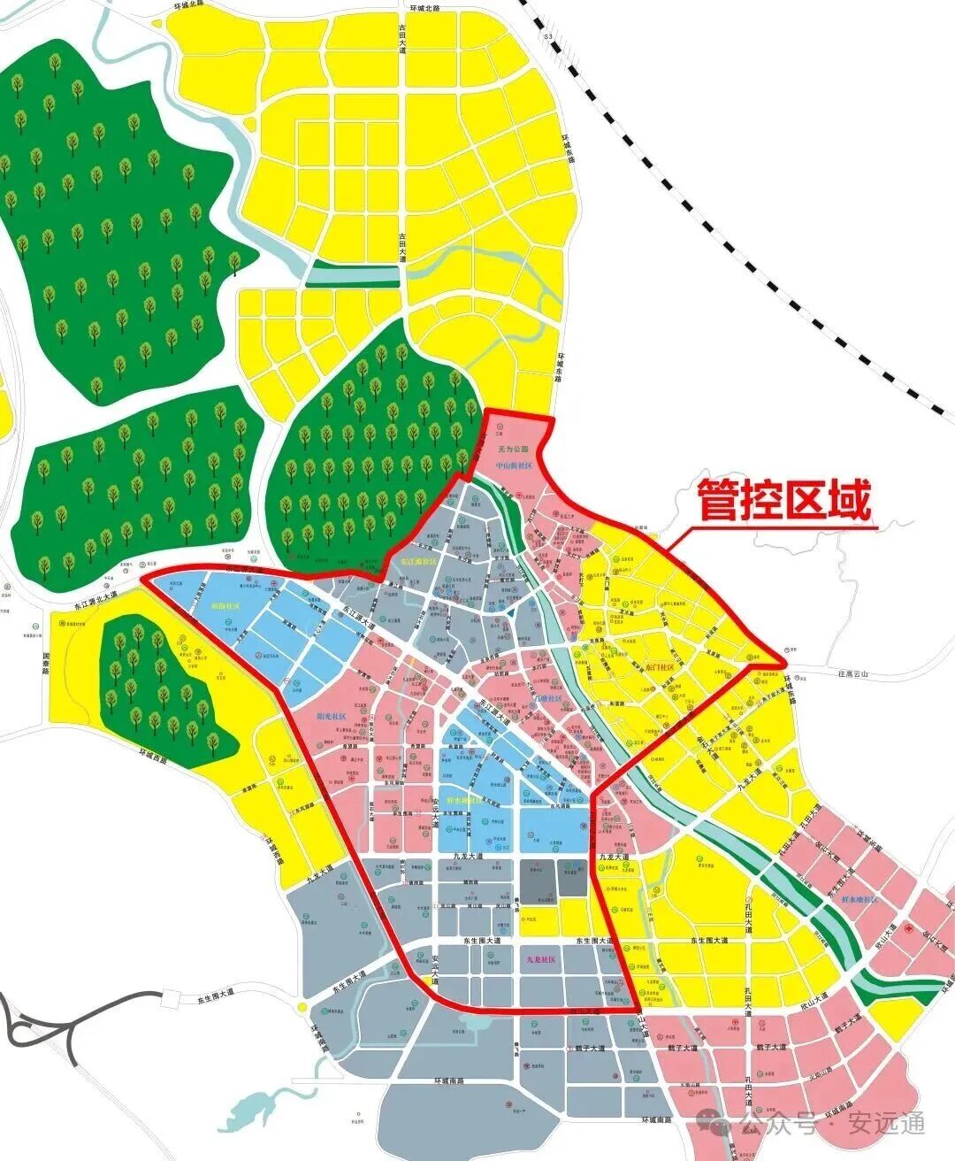 附图:安远县城中心区域禁(限)行范围示意图“交管12123”APP电子通行码申请示意图