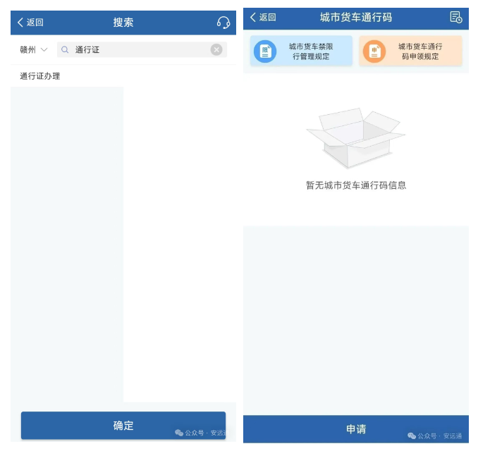2.特殊车辆、涉及保障生产生活、重点工程运输、邮政快递、鲜活农产品运输等确需进入禁限行区域的车辆,驾驶人可通过手机“交管12123”APP申领货车电子通行码,或前往安远县公安局交通管理大队办事窗口提交相关资料(含运输合同、驾驶证、行驶证、通行方案等)办理审批手续。经审批通过后,须严格按照指定时间、路线行驶。