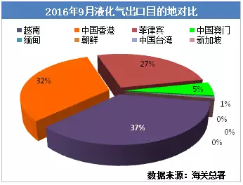 2016年9月份全国液化气出口总量7.35万吨。出口目的地前面前五位的分别是越南、香港、菲律宾、澳门缅甸。2016年1-9月出口累计95.06万吨。本月出口至东南亚以及港澳地区液化气量均有不同程度下滑,其中菲律宾需求减少尤为明显。